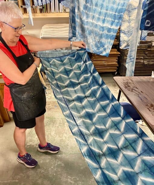 Continue to experience or try out indigo dyeing for the first time. Fabric samples will be done (no full garments please, as that uses up the vat). Fabric pieces must be “scoured” ahead of time, for cotton, linen, silk (directions will be sent to you). We will do shibori folding and clamping for interesting patterns and surprises when revealed.